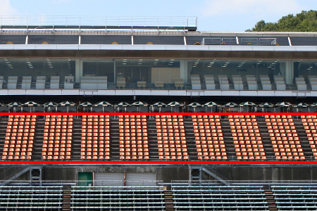 * Flags of the racers will be hoisted on the fence in front of the Grandstand seats. Therefore, some areas in the lower section of B seats have obstructed views of parts of the Racing Course.