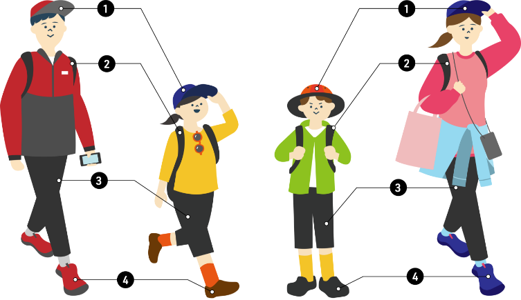 To protect yourself from the sun, a hat or cap with a wide brim is essential. For heatstroke prevention, breathable materials are recommended. It is also important to choose one that fits well and is less likely to be blown away by the wind.