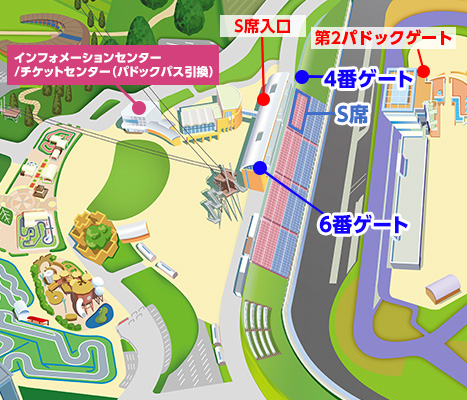 | Admission area | S Seat Area, Paddock, Excitement Area, Pit Walk | |