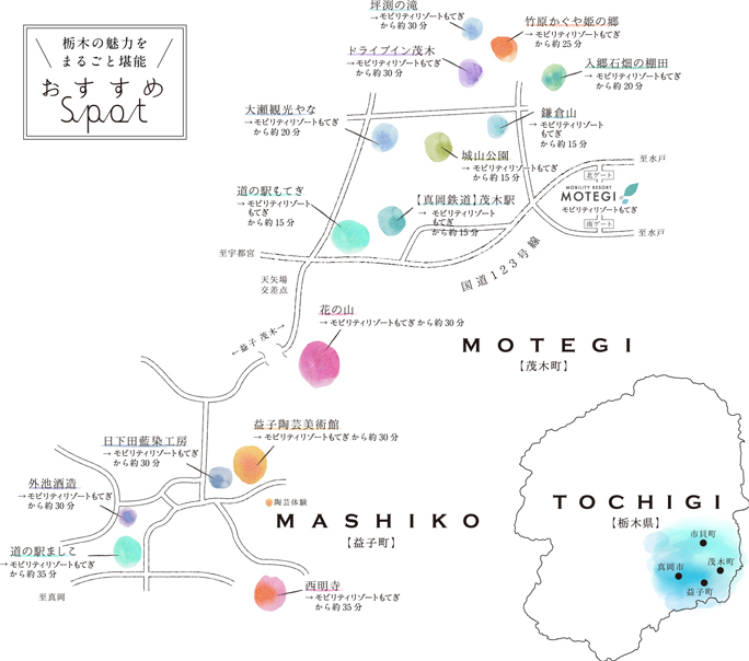 We offer a wide selection of Mashiko-yaki mugs by local artists and freshly harvested local vegetables. How about a relaxing break with dishes and drinks made from local ingredients at the on-site restaurant "Mashiko no Gohan"?