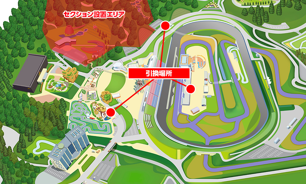 Tickets can be exchanged at the Ticket Checkpoints (in front of N2 Parking Lot / near KONOMI / Paddock Tunnel [Paddock side]).