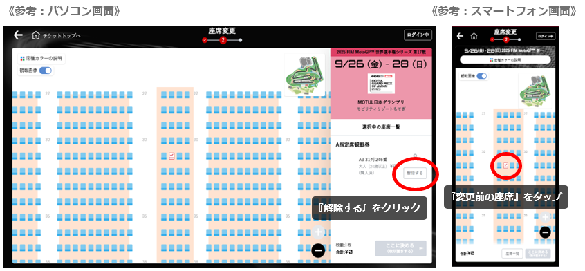 * When making changes, please be sure to release your previous seat. Before purchasing, please check the contents and price in your kart to avoid additional purchases.