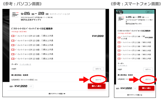 If you choose one of the following tickets, you can additionally purchase a nearby parking ticket as a purchase-limited product (for a fee).* Limited quantity