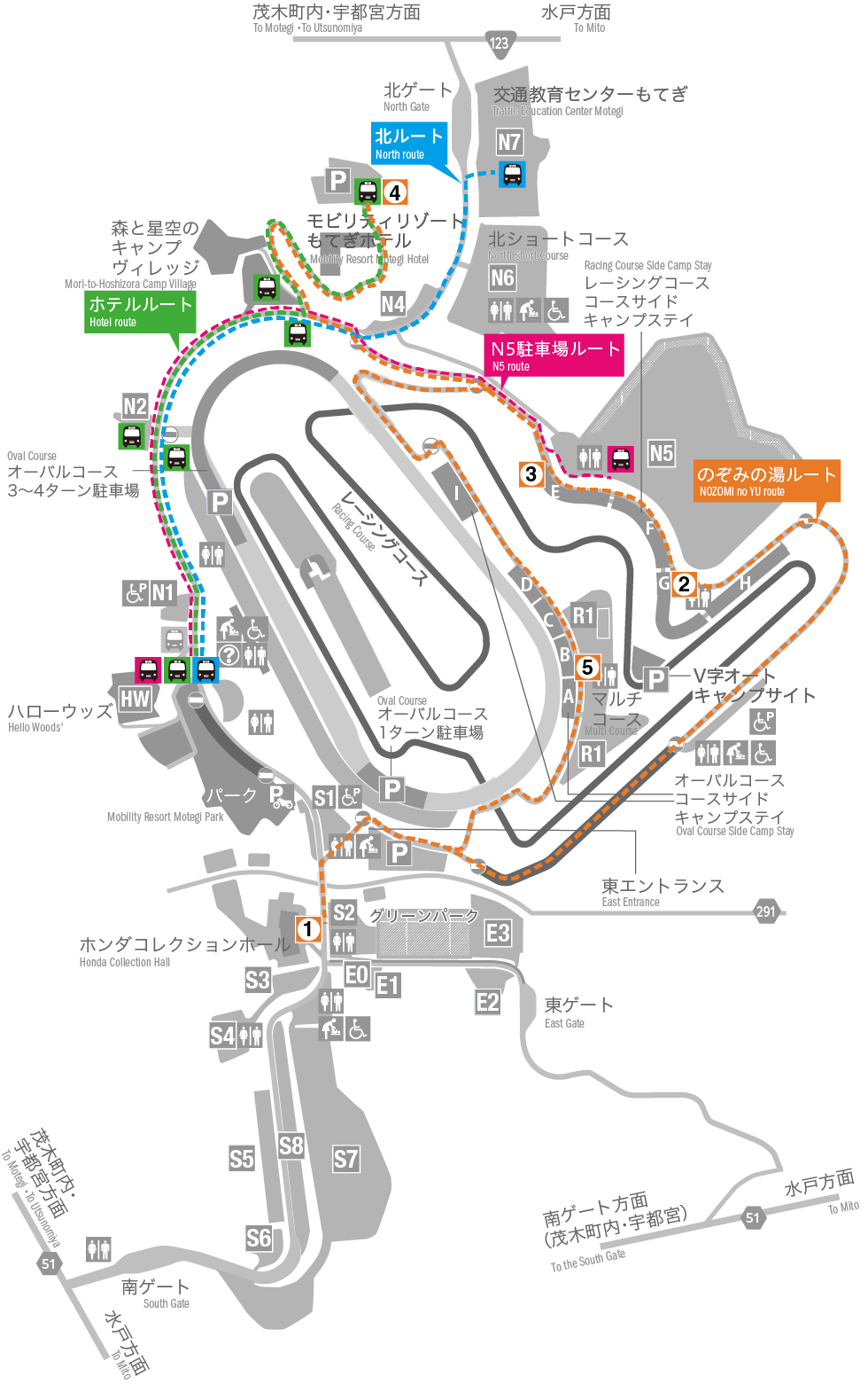 S1、S2、S3、S4、E0、東エントランス、オーバルコース、オーバルコースコースサイドキャンプステイエリア