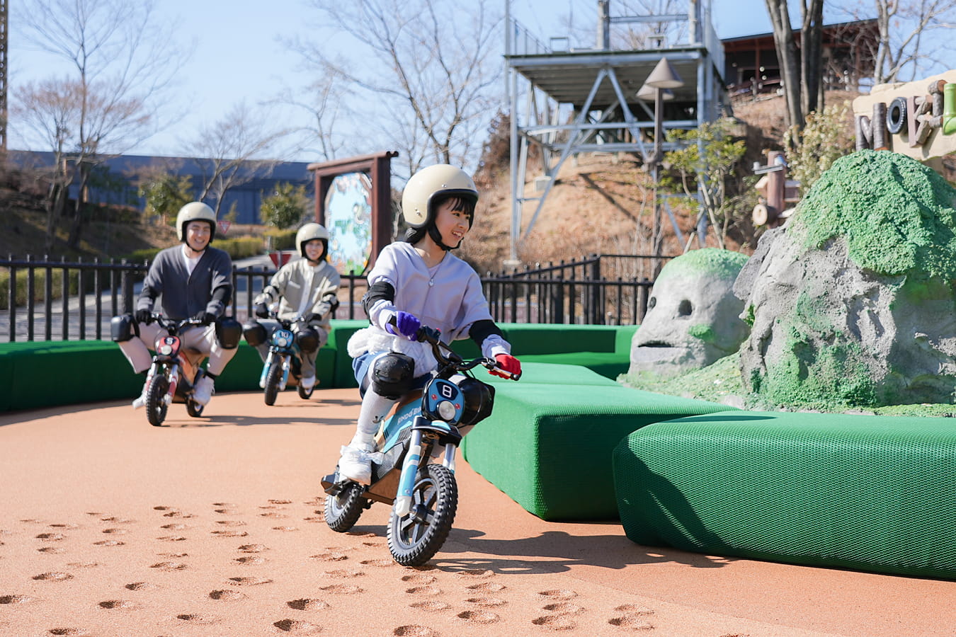 クルマやバイクのアトラクションにも挑戦できる。