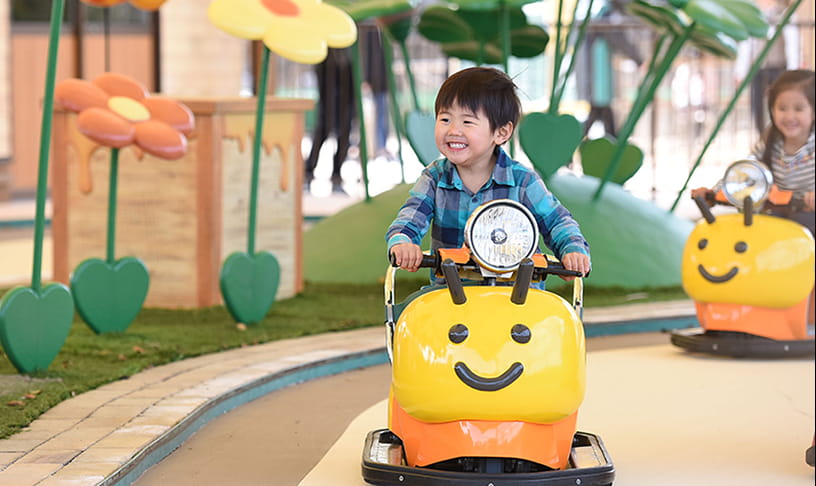クルマやバイクのアトラクションにも挑戦できる。