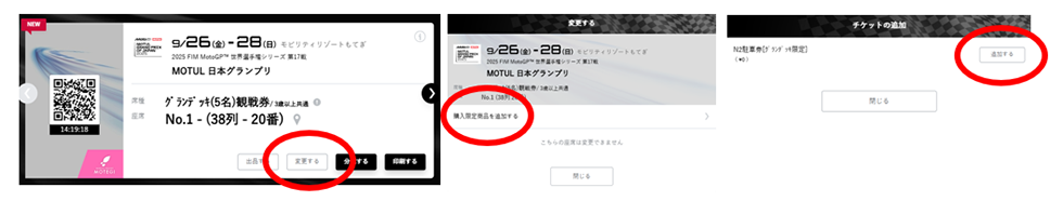 電子チケット、かつ在庫がある場合、一部のチケットを除きチケット購入後に購入限定商品の追加が可能です。