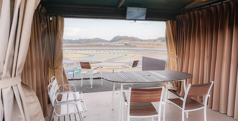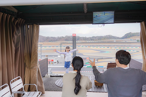 最終コーナーからストレートにかけての熱いバトルが観戦できるビクトリーコーナー、みんなでグランピングスタイルのレース観戦をオシャレに楽しめるエリア。専用モニターが付いた屋根付きの快適な空間で、ゆったりすごせるワンランク上の観戦席です。
