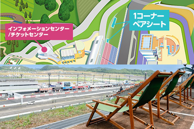 視野良好的主看台指定席。座位配有靠背和飲料架,且與鄰座的距離較寬。此外,還附有可進入圈地(關係者區域)的入場券、參加Pit Walk(賽前機車參觀活動)的券,以及園區門票!