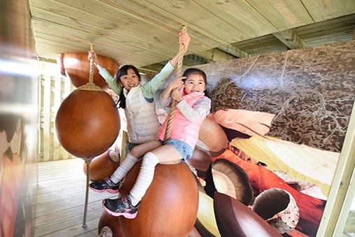 「迷宮森殿 ITADAKI」中充滿巨大且令人驚嘆的真實生物和植物雕塑。在自然界創造的各種障礙物、平衡球和網絡攀爬中享受樂趣吧!