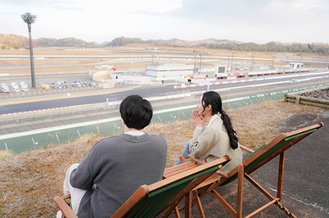 這是一個可以坐在位於能一覽賽道的高台上,成對準備的兩張躺椅上,悠閒地享受賽車觀賽的區域。